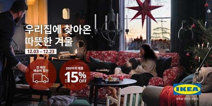이케아 코리아는 다가오는 연말, 집에서 대부분의 시간을 보내야 하는 사람들이 더 낮은 가격으로도 안전하고 편리하게 이케아의 홈퍼니싱 제품과 솔루션으로 포근하고 행복한 겨울을 즐길 수 있도록, 배송 요금 할인과 ‘따뜻한 겨울’ 프로모션 을 제공한다.