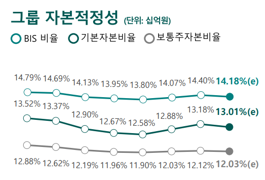 지난해 보통주자본비율(CET1)을 성공적으로 관리하면서 상대적으로 수월하게 중간배당을 결정할 수 있을 것으로 예상되기 때문이다. 보통주자본비율은 금융지주와 은행의 손실흡수력을 측정하는 국제결제은행(BIS)자기자본비율의 한 지표다. 배당으로 자본이 외부로 유출되면 이 비율이 하락해 건전성에 문제가 될 수 있기에 배당정책에 있어 핵심적으로 고려해야한다.