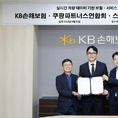 [FETV=장기영 기자] KB손해보험은 지난 25일 쿠팡파트너스연합회, 스몰티켓과 실시간 차량 데이터 기반 보험상품 개발을 위한 업무협약을 체결했다. 이번 협약에 따라 KB손보는 쿠팡 영업용 차량 운행 데이터와 사고 데이터를 실시간 수집 및 분석해 보험료 할인이 가능한 맞춤형 자동차보험 상품을 개발할 계획이다. 서울 강남구 KB손보 본사에서 진행된 협약식에 참석한 김혁 KB손보 자동차보험부문장(오른쪽 첫 번째)과 신호룡 쿠팡파트너스연합회 회장(두 번째), 이평로 스몰티켓 부대표가 기념촬영을 하고 있다. [사진 KB손해보험]