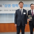 [FETV=장기영 기자] 한화손해보험은 29일 서울 여의도 금융감독원에서 열린 ‘제7회 상생·협력 금융신상품 우수사례 시상식’에서 상생·협력 증진 우수기관으로 선정돼 금감원장상을 수상했다. 한화손보는 앞서 출산 후 5년간 중대질환 2배 확대 보장 특약 등 임신, 출산 관련 특약을 출시해 제1·5회 우수사례로 선정된 바 있다. 시상식에 참석한 나채범 한화손보 사장(오른쪽)이 이찬진 금감원장과 기념촬영을 하고 있다. [사진 한화손해보험]