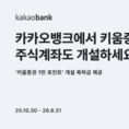 [FETV=권현원 기자] 카카오뱅크는 고객의 선택권을 넓히고 보다 다양한 투자 서비스를 제공하고자 '증권사 주식계좌 개설 서비스'에 키움증권을 새롭게 추가했다고 3일 밝혔다. 지난 2019년 출시한 '증권사 주식계좌 개설 서비스'는 카카오뱅크 앱을 통해 제휴 증권사의 개설 혜택을 비교하고 간편하게 계좌를 만들 수 있는 서비스다. 키움증권과의 제휴로 카카오뱅크에서 주식계좌를 만들 수 있는 주요 증권사는 총 8곳으로 늘어났다. 이번 입점은 지난 4월 카카오뱅크와 키움증권의 업무협약(MOU) 체결에 따른 것으로, 양사는 카카오뱅크의 플랫폼 역량에 키움증권의 투자 경쟁력을 강결합하는 전략적 협력 관계를 구축해왔다. 키움증권과 카카오뱅크는 이번 서비스 확대를 기념해 내년 8월 31일까지 카카오뱅크 앱에서만 만나볼 수 있는 단독 이벤트를 진행한다. 키움증권은 카카오뱅크 앱에서 키움증권 주식계좌를 최초 개설한 고객 모두에게 키움증권에서 현금처럼 사용 가능한 '키움증권 1만 포인트'를 개설 축하금으로 지급한다. 카카오뱅크 관계자는 "고객들에게 더 폭넓은 투자 선택지를 제공하기 위해 이번 제휴를 진행했다"며 "앞으로도 키움증권과 함께 다양한 투자 서비스 출시를 논의할 계획"