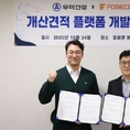 [FETV=박원일 기자] 우미건설은 지난 24일 경기도 판교에 위치한 포비콘 본사에서 업무협약을 체결하고 2D 또는 3D 형태의 정밀한 설계 도면(CAD 도면)을 입력하면 원자재의 물량과 비용을 자동 산출하는 플랫폼을 개발한다고 28일 밝혔다. 이 사업은 중소벤처기업부의 '2025년 민관협력 오픈이노베이션 지원사업'의 일환으로 대·중견기업과 혁신 스타트업의 협력을 통해 수요 기반의 산업 생태계를 활성화하기 위한 취지로 추진된다. 기존 건설 견적은 과거 실적을 참고해 산정하기 때문에 숙련도에 따라 속도와 정확성이 달라지는 문제가 있었다. 이번 플랫폼 개발로 CAD 도면을 별도의 변환 과정 없이 업로드하면 산출 결과를 확인할 수 있는 도면과 함께 물량과 견적이 산출돼 정확성과 효율성을 높일 수 있다. 한편 포비콘은 건설 특화 소프트웨어를 개발·공급하는 스타트업으로 한국건설기술연구원의 패밀리기업으로 선정됐다.
