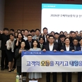 [FETV=장기영 기자] 한화생명의 자회사형 법인보험대리점(GA) 한화생명금융서비스는 출범 5주년을 맞아 ‘고객신뢰경영’을 선포했다. 한화생명금융서비스는 ‘고객과 함께 걸어온 5년, 신뢰로 완성하는 미래’라는 슬로건 아래 금융소비자 보호를 강화하고 데이터 기반 내부통제 체계를 구축할 계획이다. 지난 1일 서울 여의도 63빌딩에서 진행된 선포식에 참석한 최승영 대표이사(앞줄 왼쪽 아홉 번째)와 임직원들이 기념촬영을 하고 있다. [사진 한화생명]