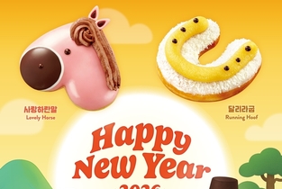 [FETV=김선호 기자] 롯데GRS가 운영하는 글로벌 도넛 프랜차이즈 브랜드 크리스피크림 도넛이 2026년 붉은 말의 해를 맞아 귀여운 말 캐릭터와 말과 연상되는 키워드로 재미나게 표현한 ‘복받으란말이야’ 도넛 4종을 선보인다. 크리스피크림 도넛은 검은 호랑이, 검은 토끼, 푸른 용, 푸른 뱀 등 2022년부터 매년 꾸준히 신년과 관련된 제품을 출시하며 소비자들의 주목을 받고 있다. 올 해는 붉은 말의 해를 테마로 새해의 희망과 기운을 받길 소망하는 마음에서 말과 연관 소재를 활용해 직관적으로 형상화한 제품을 출시했다. 복받으란말, 사랑하란말, 달리라굽, 당근 홀릭 4종으로 구성된 이번 신제품은 말의 얼굴과 말발굽, 말이 좋아하는 당근밭 등을 도넛으로 표현해 눈과 입을 모두 만족시킨다. ‘복받으란말’은 부드러운 도넛에 다크초코크림을 가득 넣은 후 커피 아이싱과 초콜릿 아이싱으로 말의 앞모습을 장식한 제품이다. ‘사랑하란말’은 도넛에 믹스 베리 필링, 스트로베리아이싱을 입혀 상큼한 맛이 특징이다. 하트 모양의 도넛을 분홍색 말의 옆모습으로 사랑스럽게 표현했다. ‘달리라굽’은 행운을 상징하는 말굽 모양으로 버터코코넛 스프레드를 입힌 후 코코넛파우더와 카야잼으로
