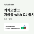 [FETV=권현원 기자] 카카오뱅크는 브랜드저금통 시리즈의 10번째 상품으로, CJ와 협업한 ‘저금통 with CJ’를 선보인다고 17일 밝혔다. ‘브랜드저금통’은 계좌 속 1000원 미만 잔돈을 모아 최대 10만원까지 저축할 수 있는 ‘저금통’에 제휴사의 혜택을 더한 상품이다. 이번 ‘저금통 with CJ’는 CJ제일제당(CJ더마켓), CJ올리브영, CJ푸드빌(뚜레쥬르) 등 CJ 주요 브랜드의 다양한 할인 혜택을 담았다. 가입은 이날부터 12월 14일까지 가능하며, 만 14세 이상 고객이면 누구나 참여할 수 있다. 저금통이 없는 고객은 카카오뱅크 ‘저금통’을 먼저 개설한 뒤 가입하면 된다. 고객들은 12월 21일까지 누적 저금 횟수에 따라 최대 5단계의 혜택을 받을 수 있다. 첫 저축에는 CJ제일제당 공식몰 ‘CJ더마켓’ 1만원 할인 쿠폰이, 누적 4회 저축 시에는 4000원 할인 쿠폰이 제공된다. 2회차에는 ‘올리브영’ 4000원 할인 쿠폰이 주어진다. 3회차에는 ‘뚜레쥬르’ 4000원 할인 쿠폰이, 5회차에는 아메리카노 교환권이 제공될 예정이다. 혜택은 각 브랜드별 앱에서 등록 후 사용할 수 있으며, 자세한 내용은 카카오뱅크 앱 내 상품 안내 페이지에서