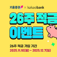 [FETV=이건혁 기자] 키움증권은 카카오뱅크와 손잡고 ‘26주적금with키움증권’을 출시한다고 10일 밝혔다. 카카오뱅크의 26주적금에 키움증권의 다양한 투자 지원 혜택을 결합한 상품이다. ‘26주적금’은 26주동안 최초 가입금액만큼 매주 자동으로 증액된 금액을 저축할 수 있는 상품이다. ‘26주적금with키움증권’은 매주 납입에 성공하면 국내주식 거래지원금, 펀드 쿠폰, 채권 쿠폰 등을 순차적으로 지급한다. 다음달 7일까지 가입할 수 있다. 우선, 적금 1주차 납입하면 키움포인트 3000원을 지급한다. 키움포인트는 키움증권 모바일트레이딩시스템(MTS) 영웅문S#에서 현금처럼 사용할 수 있다. 이후 3주차에는 신규 및 휴면 고객이 사용할 수 있는 국내주식 거래지원금 1만원을 지급하며 25주차 납입 시, 1000원 상당의 해외 소수점 주식도 지급한다. 26주적금에 성공하면 최대 5만5000원 상당 투자 혜택을 받을 수 있다. 이번 협력은 양사가 체결한 전략적 업무협약(MOU)의 일환으로, 지난 3일 오픈한 양사의 제휴 계좌개설에 이은 두번째 성과다. 단순한 적금 연계 이벤트를 넘어 저축과 투자를 아우르는 비대면 종합 금융 생태계 구축을 목표로 한다. 양사는