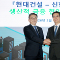 [FETV=권현원 기자] 신한은행은 지난 13일 서울 종로구 소재 현대건설 본사에서 현대건설과 생산적 금융 활성화를 위한 상호협력 업무협약을 체결했다고 18일 밝혔다. 이번 협약식에는 정상혁 신한은행장과 이한우 현대건설 대표이사가 참석했으며, 양사는 이번 협약을 계기로 금융이 실물 경제 투자와 성장으로 이어지는 협력 체계를 구축하고, 생산적 금융 확대에 공동 참여한다. 양사는 성공적인 사업 추진을 위해 각 프로젝트의 특성과 자금 수요에 맞춘 최적의 금융 지원 방안을 함께 검토하고 실무 협력 체계를 가동하기로 했다. 신한은행은 협약에 따라 현대건설이 추진하는 ▲데이터센터 ▲신재생에너지 ▲인프라/환경 ▲전력중개거래 등 사업 전반에 대해 금융 협력을 강화하며, 프로젝트별 금융자문, 금융주선, 투자 연계 등을 통해 자금을 지원한다는 방침이다. 특히 양사는 사업 추진 과정에서 정보 교류를 강화하고 협력체계를 구축해 프로젝트 특성에 맞는 금융상품 및 맞춤형 금융 솔루션 개발에 협력하기로 했다. 신한금융그룹은 지난해 12월 ‘그룹 생산적 금융 추진단’을 발족하고 국가핵심산업·혁신기업·제조업을 중심으로 자금이 실물 경제의 생산적 영역으로 유입될 수 있도록 생산적 금융 확대