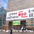 [FETV=장기영 기자] 교보생명은 오는 21일 서울 광화문광장에서 진행되는 그룹 방탄소년단(BTS)의 컴백 라이브 공연을 앞두고 본사 외벽에 초대형 래핑을 설치했다. 교보생명은 BTS 소속사 빅히트뮤직과 협업해 가로 90m, 세로 21m 크기의 래핑에 ‘나에게서 시작한 이야기가 온 세상을 울릴 때까지. 본 인 코리아, 플레이 포 더 월드(Born in Korea, Play for the World)’라는 문구를 넣었다. 광화문광장을 지나가는 시민들이 교보생명 본사 앞에서 래핑을 바라보고 있다. [사진 교보생명]