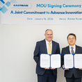 [FETV=김선호 기자] 한국콜마가 글로벌 화학기업 이스트만과 손잡고 친환경 메이크업 소재 개발에 나선다. 이번 협업으로 지속가능성과 기능성을 함께 갖춘 재생 소재를 선보이며 글로벌 경쟁력을 강화할 계획이다. 한국콜마는 지난 16일 서울 서초구 소재 종합기술원에서 미국 최대 화학기업 이스트만과 친환경 메이크업 소재 개발을 위한 업무협약을 체결했다고 밝혔다. 이날 협약식에는 한상근 한국콜마 기술연구원 부사장과 트래비스 스미스 이스트만 수석부사장 등 관계자들이 참석했다. 이스트만은 첨단 소재와 기능성 첨가제 등 다양한 산업 분야를 아우르는 글로벌 대표 석유화학기업으로 1920년 미국에서 설립됐다. 폐플라스틱을 분자 단위로 분해해 동일한 품질의 원료로 재활용하는 기술 등 지속가능 소재 분야에서 세계 최고 수준의 기술력을 갖춘 기업으로 평가받는다. 이번 협약으로 양사는 색조 화장품에 사용되는 미세플라스틱을 대체할 친환경 재생 소재를 공동 개발한다. 색조 화장품은 발림성과 밀착력, 지속력 구현을 위해 이러한 합성 소재가 사용돼왔다. 양사는 나무에서 추출되는 셀룰로오스와 자연 분해가 가능한 폴리머를 각각 차세대 천연 재생 소재로 개발한다는 목표다. 한국콜마는 이번 협업