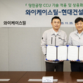 [FETV=박원일 기자] 현대건설은 지난 25일 서울 종로구에 위치한 계동 본사에서 와이케이스틸(YK Steel)과 ‘당진공장 CCU 기술 적용 및 상용화 추진' 협력을 위한 업무협약(MOU)을 체결했다고 26일 밝혔다. 이날 행사에는 현대건설 김재영 기술연구원장, 와이케이스틸 장승호 대표이사를 비롯한 양사 주요 관계자들이 참석해 와이케이스틸 당진공장 내에 하루 150톤의 이산화탄소를 포집하는 CCU 플랜트 구축을 위한 상호 협력을 약속했다. 이번 협약은 와이케이스틸이 제품 생산의 저탄소 전환을 위해 당진공장에 추진 중인 탄소중립 프로젝트의 일환으로 실시됐다. 현대건설은 제강공정에서 발생하는 이산화탄소를 포집 및 액화하는 플랜트 시설과 관련 기술 등을 검증하며 와이케이스틸은 CO₂ 포집과 활용을 위한 제반 설비 연계와 사업장 확대를 위한 수요처 발굴을 담당한다. 당진공장 내에 CCU 플랜트가 구축되면 와이케이스틸 철강 제품의 저탄소 생산이 가능해지며 포집된 이산화탄소는 액화 과정을 거쳐 액체 탄산 및 드라이아이스로 활용하거나 인근 스마트팜과 연계해 에너지 순환 클러스터로 운영될 계획이다. 최근 정부의 강도 높은 온실가스 감축 목표 발표와 EU의 탄소국경조정제