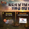 [FETV=신동현 기자] NHN은 모바일 게임 ‘한게임 섯다&맞고’가 독도의 날(10월 25일)을 맞아 진행한 기부 이벤트 수익금 1000만원을 (사)대한민국독도협회에 전달했다고 21일 밝혔다. 이번 기부는 이용자 참여형 이벤트로 ‘독도 기부 상품’을 구매할 때마다 금액의 10%가 적립되는 방식으로 진행됐다. 누적된 금액에 NHN의 추가금을 더한 최종 1000만원은 독도 관련 교육 자료 제작 등 독도의 중요성을 국내외에 알리는 사업에 사용될 예정이다. ‘한게임 섯다&맞고’는 독도를 상징적으로 반영한 동호회 전용 콘텐츠 ‘독도 수호전’과 ‘독도 연합 공방전’을 운영 중이며, 이용자들이 게임을 즐기면서 나눔에 참여할 수 있는 형태의 이벤트를 꾸준히 이어가고 있다. NHN은 연말까지 다양한 이용자 참여 이벤트를 이어간다. 현재는 ‘챌린지 오픈 기념 이벤트’를 진행 중으로, 미션 수행과 훈장 획득을 통해 보상을 받을 수 있다. 27일까지 훈장을 획득하고 슬롯 3개에 대표 훈장을 설정한 이용자에게는 아이템 랜덤 박스가 은장 1레벨 이상 달성자에게는 게임머니 1억 쩐이 지급된다. 이외에도 참여자 중 100명을 추첨해 10억 쩐을 제공하는 추가 보상도 마련