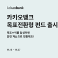 [FETV=권현원 기자] 카카오뱅크는 ‘목표전환형 펀드’를 출시하며 펀드 서비스 상품 라인업을 강화한다고 18일 밝혔다. 목표전환형 펀드란, '목표전환 수익률'을 설정하고 운용 초기에는 주식 등 비교적 위험 자산 중심으로 운용하다가 수익률을 달성하면 채권 등 안전 자산으로 자동 전환해 운용하는 펀드다. 시장 상황에 따라 수익을 실현하면서도 리스크를 줄일 수 있어 최근 투자자들의 관심이 높다는 설명이다. 카카오뱅크가 이번에 선보이는 첫 번째 상품은 ‘정책수혜로 목표수익률 함께하기’ 펀드다. 국내 정책 수혜주와 코스피200 관련 주식 ETF에 운용자금의 50% 미만을 투자하며, 목표수익률 6% 달성 시 모든 자산이 채권 ETF로 전환돼 안정성을 보완한다. 해당 상품은 11월 18일부터 27일까지 10일간 가입할 수 있으며, 최소 가입금액은 30만원이다. 모집이 종료되는 28일부터 운용이 시작된다. 투자 고객은 펀드 화면에서 목표수익률 달성 여부와 운용 전환 단계 등을 실시간으로 확인할 수 있다. 또한 해지 시 카카오뱅크 계좌 또는 MMF박스로 해지 금액이 자동 입금되는 '자동출금 서비스'도 제공해 편의성을 높였다. 카카오뱅크는 2024년 1월 인터넷전문은행 중