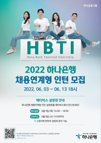 [FETV=권지현 기자] 하나은행은 2022년도 채용연계형 인턴을 모집한다고 3일 밝혔다. 하나은행이 채용연계형 인턴을 뽑는 것은 3년 만이다.