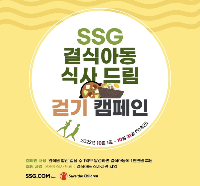 SSG닷컴은 지난 10월 한 달 간 전체 임직원을 대상으로 진행한 하반기 ‘쓱 드림 걷기 캠페인’을 성공적으로 종료했으며 오는 18일 결식아동 식사 지원을 위한 기부금을 전달한다고 4일 밝혔다.