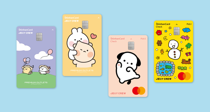 젤리크루 캐릭터를 반영한 한정판 카드는 기존 상품과 동일한 서비스를 제공하며, 신세계사이먼 프리미엄 아울렛 신한카드 2종은 각각 2000매씩 발급되고, 신한카드 Pick E 체크, 신한카드 Pick I 체크는 각각 1만매씩 발급된다.