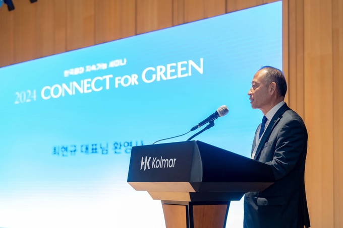 한국콜마는 지난 5일 서울 서초구 소재 한국콜마 종합기술원에서 제2회 지속가능 세미나 ‘CONNECT FOR GREEN’을 개최했다고 밝혔다. 브랜드·제조·원료기업 등 국내 화장품 업계 관계자 200여명이 참석한 대규모 행사로, 지난해에 이어 두번째로 열린 세미나다.