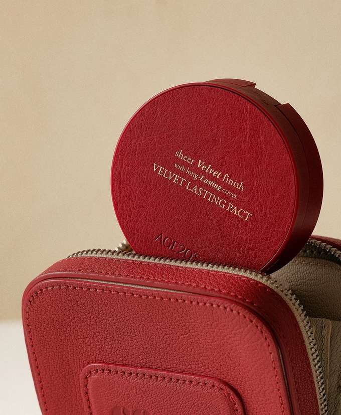 AGE20’S 벨벳 래스팅 팩트 프루아 콜라보 에디션은 가을, 겨울 시즌에 맞춰 부드러운 레더 소재의 케이스에 프루아를 대표하는 벨벳 레드 컬러를 적용해 디자인의 고급스러움을 더한 제품이다.