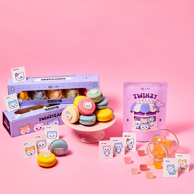 각양각색의 있지 멤버들처럼 트윈지 마카롱과 젤리에도 민트초코, 딸기 등 5가지의 색상과 맛으로 다채롭게 구현했다. 각 상품에는 트윈지 띠부씰을 넣어 팬들의 소장 욕구를 높였다.