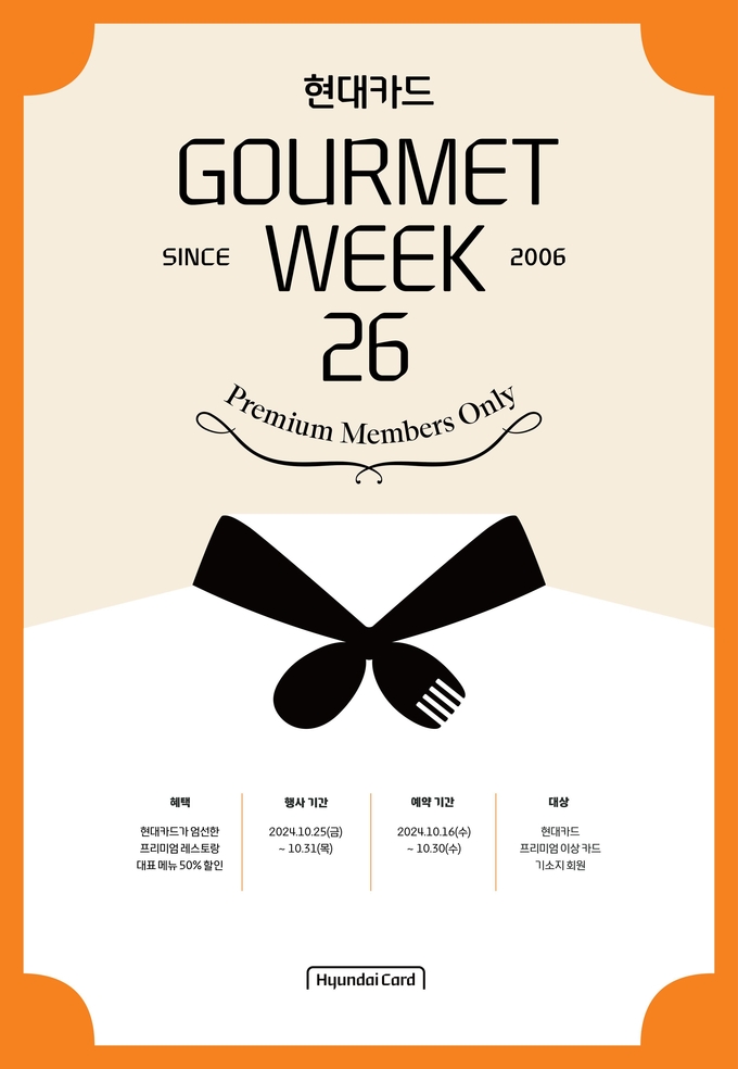 ‘현대카드 고메위크 26’은 오는 25일부터 31일까지 진행된다. 100% 사전 예약제로 운영되며, 현대카드 앱에서 레스토랑과 인원 수, 방문 시간을 선택하고 예약보증금을 결제하면 예약이 확정된다. 예약 기간은 16일 오전 9시부터 30일 밤 11시 59분까지다.