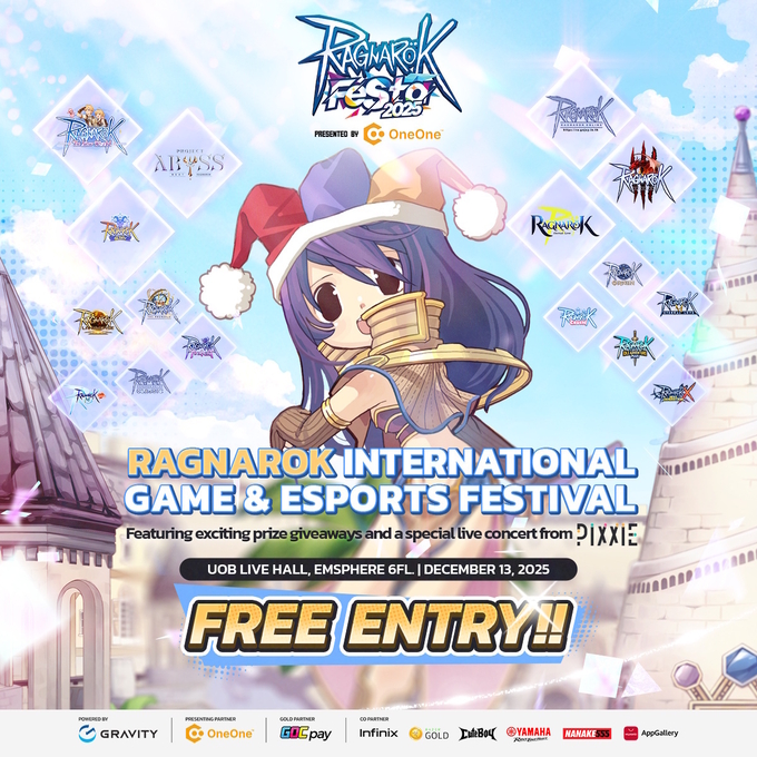 [FETV=신동현 기자] 그라비티의 태국 지사 그라비티 게임 테크(Gravity Game Tech, GGT)가 오는 12월 13일 태국 방콕 엠스피어 UOB 라이브홀에서 ‘RAGNAROK FESTA 2025 Presented By OneOne(이하 라그나로크 페스타 2025)’을 개최한다고 14일 밝혔다.