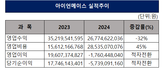 한편 아이언메이스는 소송이 이어지는 동안 실적에서도 타격을 받았다. 아이언메이스는 2023년 다크앤다커 흥행으로 352억원의 영업수익과 196억원의 영업이익을 기록했지만 1년 만에 영업이익과 당기순이익 모두 적자로 전환됐다. 당기순이익 악화에는 손해배상금이 영업외비용으로 반영된 영향이 컸지만 매출 감소 역시 뚜렷했다.