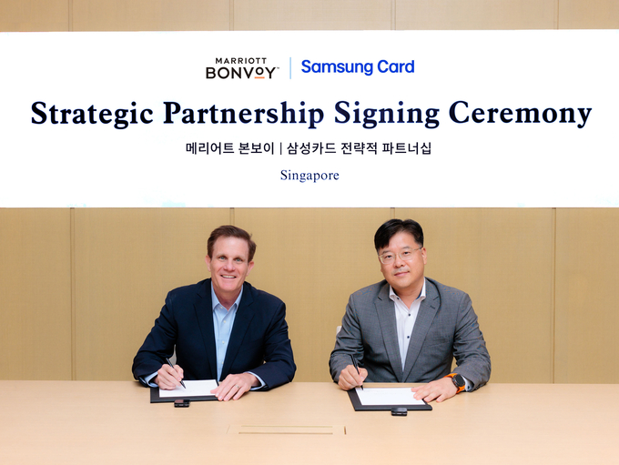 [FETV=임종현 기자] 삼성카드는 글로벌 호텔 기업 메리어트 인터내셔널(이하 메리어트)과 전략적 업무 협약을 체결했다고 5일 밝혔다. 이날 협약식에는 삼성카드 마케팅본부장 김대순 부사장과 메리어트 인터내셔널 아시아 태평양(중화권 제외) 커머셜 부문 존 투미(John Toomey) 부사장 등 양사 주요 관계자가 참석했다.
