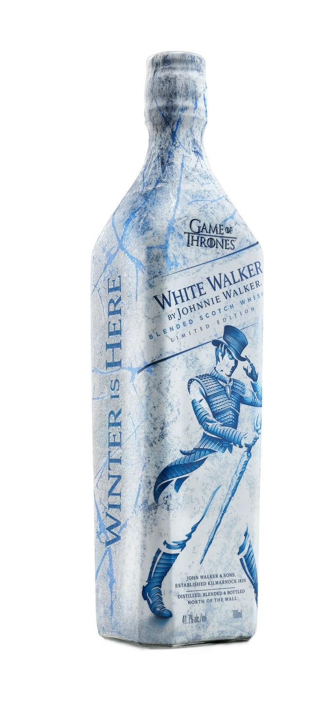 ‘화이트 워커 바이 조니워커’는 왕좌의 게임 위스키로 출시 전부터 화제를 모았다. 스카치 위스키 브랜드 조니워커와 HBO 인기 드라마 왕좌의 게임이 만나 한정판으로 생산했다. 바(Bar) 및 주요 가정 채널에서 위스키 제품이 이렇게 단기간에 많은 판매량을 기록한 것은 매우 이례적이다.