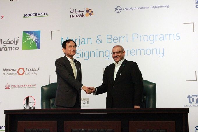 계약 서명식에는 사우디 아람코 아민(Amin H.Nasser)사장, 알사디(Ahmad A. Al-Sa’adi) 수석 부사장, 파하드 헬랄(Mt. Fahad E. Al-Helal) 프로젝트 매니지먼트(Project Management) 부사장을 비롯한 사우디 주요인사 관계자와 이원우 현대건설 플랜트사업 본부장, 알코바 지사장 김항열 상무 등이 참석했다.