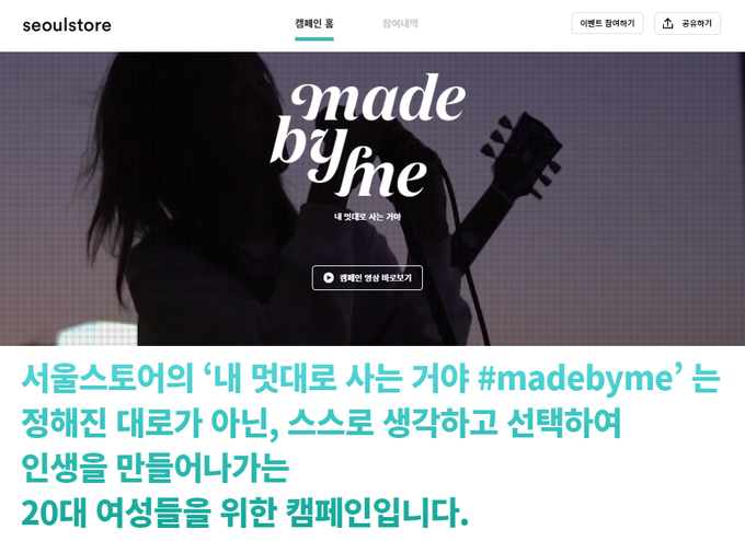 [FETV=김윤섭 기자] 서울스토어는 젊은 청춘들을 위해 진행한 ‘내 멋대로 사는 거야, #madebyme’ 캠페인을 많은 소비자들의 관심과 참여 속에 성공적으로 마무리했다고 31일 밝혔다.