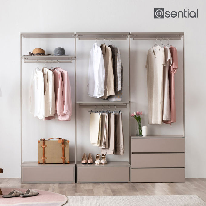 앳센셜 모듈 가구를 활용하면 같은 공간이라도 새로운 분위기로 연출할 수 있다. 조립 방식에 따라 행거, 서랍, 선반 등 열 종류의 모듈로 다양한 형태의 가구를 만들어 낸다. 거주 공간 이동이 잦고 나만의 스타일을 연출하고 싶은 1인 가구와 효율적 공간 활용이 필수적인 가족 단위 고객 모두에게 유용하다.