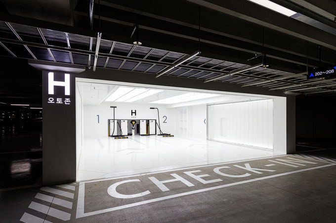 H 오토존은 차고와 같은 차량관리 공간이 없는 아파트의 단점을 보완하기 위해 단지 내 지하주차장 한켠에 셀프세차장보다 넓은 면적을 마련했다. 날씨와 시간에 구애받지 않고 언제든 편리하게 차량 내부를 정돈하고 간단한 정비 혹은 튜닝을 할 수 있다.