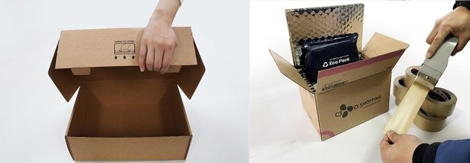 CJ ENM 오쇼핑부문은 2017년 7월 업계 최초로 비닐 에어캡 대신 종이 완충재와 친환경 보냉 패키지, 종이 행거 박스를 도입했다. 재활용이 어려운 비닐테이프 대신 접착제가 필요 없는 ‘에코 테이프리스 박스’를 유통업계 최초로 포장재에 적용해 친환경 활동을 선도하고 있다.