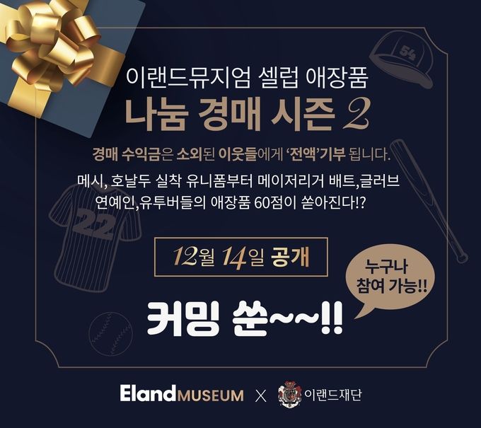 또한 피겨여왕 김연아 선수, KBL리그 MVP출신 허훈 선수 등 유명 스포츠 선수들 및 유튜브 ‘이랜드뮤지엄’ 채널에 출연했던 김광현, 양의지, 이정후, 김태균 선수 등의 유명 야구선수들과, 소찬휘, 박완규, 우원재, 등 다양한 분야의 아티스트들, 미션파서블 외 여러 인기 유튜버들의 애장품도 기증될 예정이다.