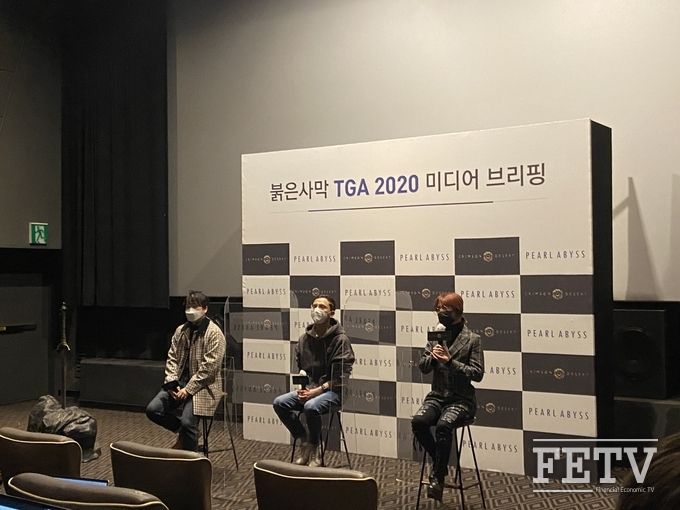 펄어비스는 15일 서울 강남구 센트럴시티에서 기자간담회를 열어 신작 PC·콘솔 게임 '붉은사막'을 공개했다. 이번 간담회에는 정환경, 이성우 공동 프로듀서와 채효석 액션 디렉터가 자리해 게임에 대한 이모저모를 소개했다.