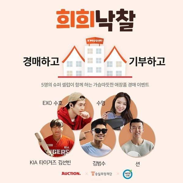 애장품 경매 행사에는 EXO 수호, 소녀시대 수영, KIA 타이거즈 야구선수 김선빈, 가수 김범수, 가수 션 등 5명의 셀럽이 참여해, ‘노비스 패딩’, ‘코치 핸드백’, ‘선수 실착 유니폼’, ‘발렌티노 구두’ 등 다양한 상품을 기증했다.