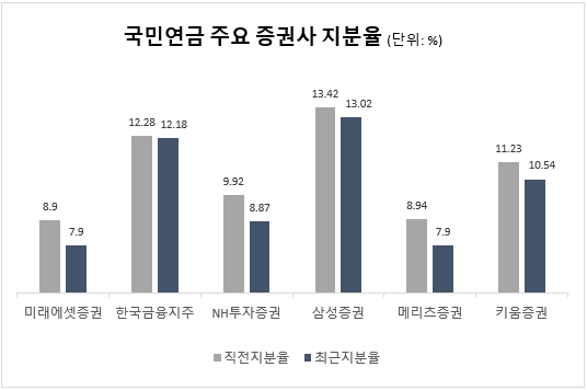[FETV=이가람 기자] 국내 최대 기관투자자인 국민연금이 보유 중인 대형증권사의 지분을 줄이고 있다.
