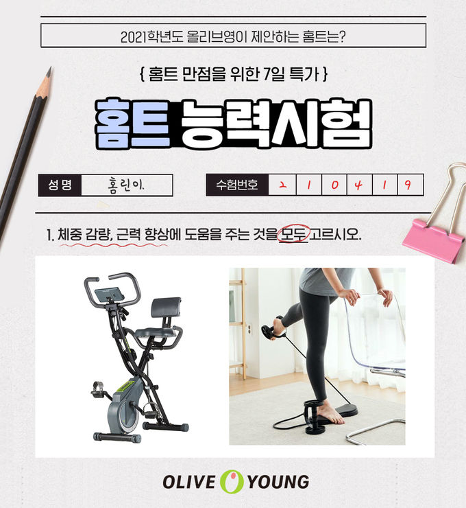 코로나19 영향으로 집에서 간편하게 운동하는 홈트레이닝(홈트)이 뉴노멀(New normal) 트렌드로 자리한 가운데, 올리브영은 여름을 앞두고 미리 건강한 몸매 가꾸기에 나선 2030 고객을 위해 이번 기획전을 준비했다.