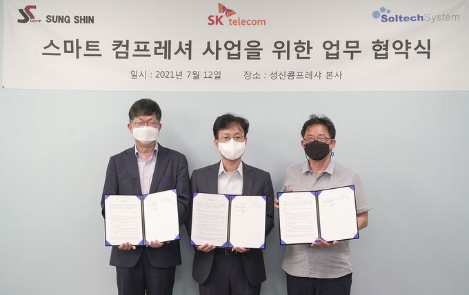 SK텔레콤은 성신콤프레샤, 솔텍시스템과 함께 스마트 컴프레셔 상용화를 위한 업무협약을 12일 체결했다고 13일 밝혔다.