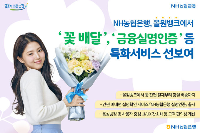 [FETV=권지현 기자] NH농협은행은 모바일 플랫폼 올원뱅크에서 '올원플라워', 'NH농협은행 실명인증' 등 다양한 특화 서비스들을 새롭게 선보인다고 8일 밝혔다.