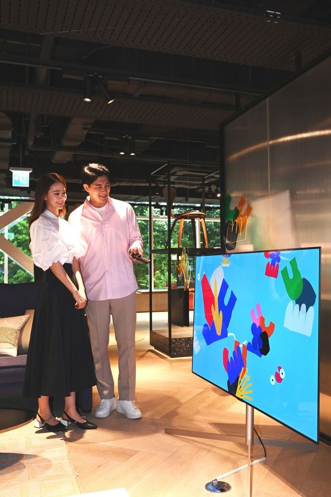 차인철 작가의 작품은 제품이 설치된 공간과 어우러지는 아트 오브제 역할을 한다. 스크린 주변에 배치돼 주목도를 높이거나 롤러블 화면이 펼쳐지는 정도에 따라 작품이 보여지는 정도를 다르게 하는 등 각 제품이 가진 디자인 특성을 돋보이게 하는 다양한 연출로 관람객들의 눈길을 사로잡는다.