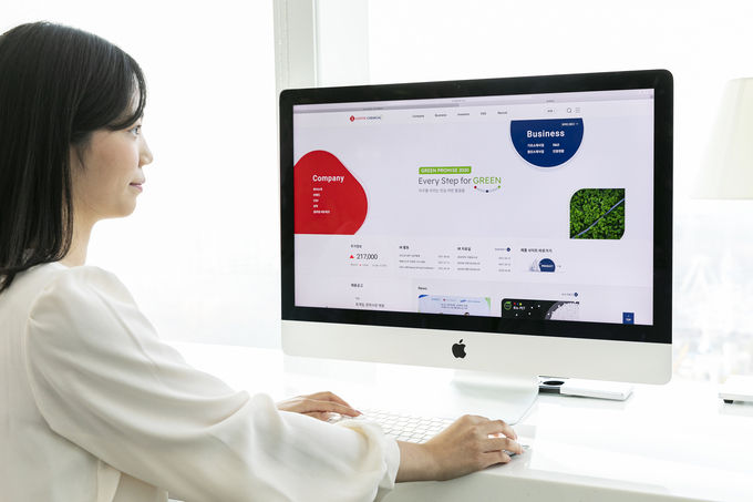 먼저 대표 홈페이지는 회사소개, IR(공시), ESG, 채용 등의 메뉴를 메인 페이지에 배치함으로써 사용자들이 정보에 쉽게 접근할 수 있도록 편의성을 높혔다. 메인화면 역시 사용자 동선을 고려해 최대한 간결하게 화면을 구성했다. 홈페이지 하단에는 전체 메뉴 보기를 고정해 원하는 페이지에 바로 이동할 수 있도록 했다.