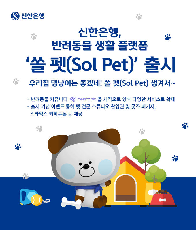 '쏠 펫'은 반려동물 양육가구의 지속적 증가에 발맞춰 반려동물 및 보호자를 위한 새로운 상품과 서비스를 통해 고객 만족을 높이기 위해 출시한 반려동물 생활 플랫폼으로 신한 쏠을 통해 누구나 이용 가능하다.
