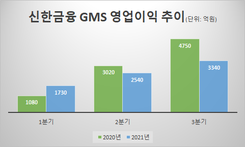 신한금융 관계자는 "GMS는 채권 및 주식을 운영하는 곳으로 금융그룹의 특성상 채권 비중이 높은데다, 금리 인상에 따른 채권 가격 하락으로 이익폭이 줄었다"면서 "보수적인 채권 비중 유지를 위해 금리 변동에도 안정적인 운용에 중점을 두고 시장 상황에 대응 하고 있다"고 설명했다.