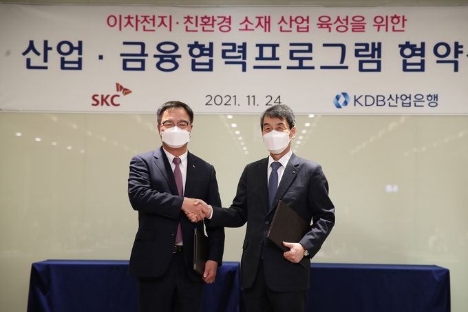 [FETV=박신진 기자] 산업은행은 SKC의 자회사인 SK넥실리스의 전북 정읍 소재 동박 공장에서 SKC와 '이차전지·친환경 소재 육성을 위한 산업·금융협력프로그램' 협약을 체결했다고 24일 밝혔다.