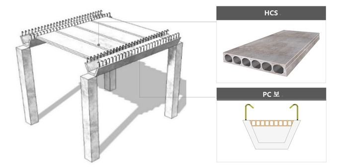 WBS공법은 와이드 경량 PC보와 중공 슬래브(Hollow Core Slab)로 구성된다. PC 중공 단면을 이용함으로써 경량화 및 콘크리트 물량을 저감시킨 경제적인 공법이다. WBS공법은 응력이 좋아 기둥 없이도 시공이 가능하고 내진 성능 또한 우수한 것으로 평가받는다.
