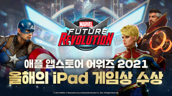 [FETV=최명진 기자] 넷마블은 모바일 오픈월드 액션 RPG '마블 퓨처 레볼루션'이 한국 게임업계 최초로 ‘애플 앱스토어 어워즈 2021’에서 올해의 아이패드(iPad) 게임상을 수상했다고 3일 밝혔다.
