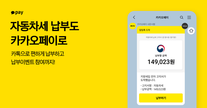 [FETV=박신진 기자] 카카오페이가 카카오페이 청구서로 12월 자동차세를 납부하면 추첨을 통해 경품을 지급하는 이벤트를 실시한다고 14일 밝혔다.