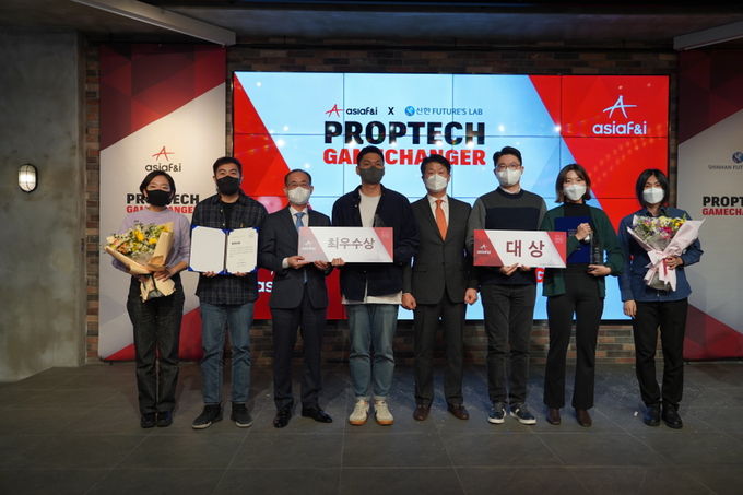 [FETV=박신진 기자] 신한금융그룹의 스타트업 육성 프로그램인 '신한 퓨처스랩'은 지난 14일 아시아에프앤아이와 함께 서울 강남구에 위치한 한화드림플러스에서 '프롭테크 게임체인저' 공모전 시상식<사진>을 개최하고 총 7개 스타트업을 최종 수상팀으로 선정했다고 15일 밝혔다.