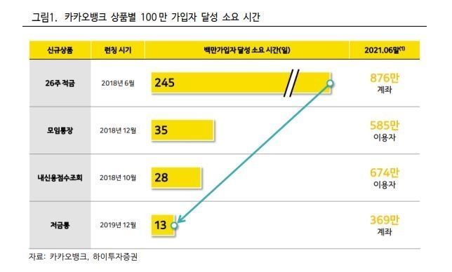 파트너와의 제휴를 통한 상품 출시로 트래픽 증가 효과도 톡톡히 누렸다. 고객 저변이 넓어질수록 출시하는 상품의 100만명 가입자 달성 시간도 단축되고 있는 것으로 나타났다. 카카오뱅크의 모임통장은 출시 35일만에 100만가입자 달성에 성공했으며, 신용점수조회는 28일, 저금통상품은 13일이 걸렸다. 카카오뱅크는 다양한 업종과의 파트너사 제휴를 지속적으로 확대할 계획으로 상품의 흥행몰이는 이어질 것으로 전망된다.