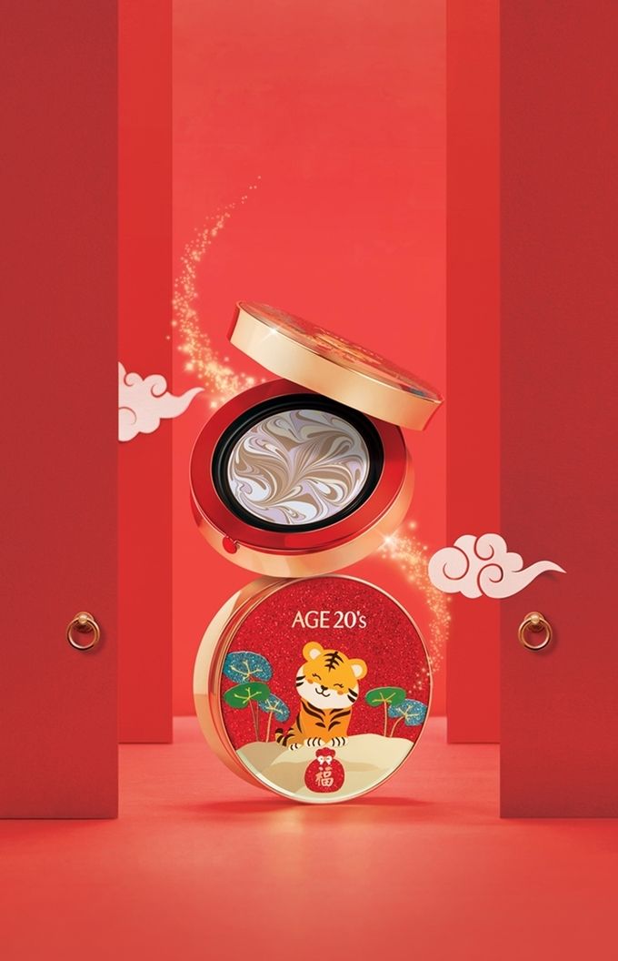 럭키 타이거 에디션은 AGE 20’s만의 수분 에센스를 71% 함유해 오래도록 촉촉하게 빛나는 피부를 완성해준다. 메이크업의 커버력을 높여주는 ‘트리플 커버 파우더’를 적용해 기미, 주근깨, 잡티 등 피부 결점을 커버해주며 한 번 바르면 30시간 이상 메이크업이 지속돼 수정화장 없이도 깔끔한 피부 표현을 유지해준다.